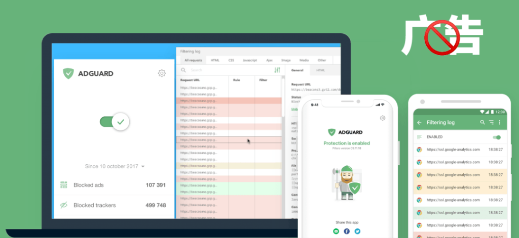 AdGuard 不仅内置防反屏蔽功能,同时支持 Win、Mac、安卓、iOS 四大主流系统,而且一经启用,无须额外配置即可在系统内生效!